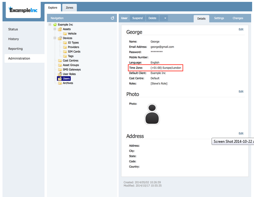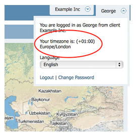 To determine what time zone your account is set to, click on the down arrow next to your name: