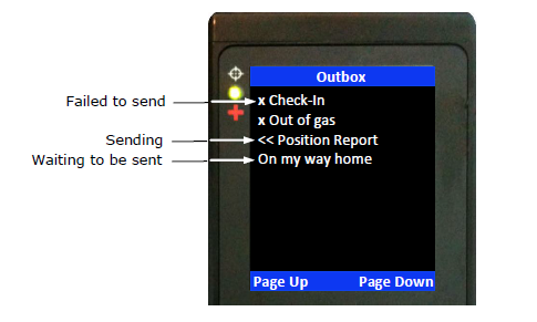 NOTE: The Indigo Xplorer will NOT resend “failed messages” even after the Iridium signal becomes available. User has to manually requeue a failed message(s) in order to resend. This is to prevent unintentional depletion of battery power in case there is large number of failed messages in the Outbox. Failed Cancel 911 message also needs to be requeued.